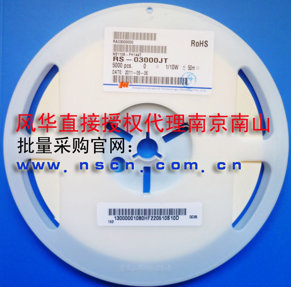 風(fēng)華高科(FH)代理商南京南山半導(dǎo)體有限公司代理供應(yīng)風(fēng)華高科(FH)常規(guī)貼片電阻全系列產(chǎn)品。風(fēng)華貼片電阻規(guī)格型號(hào)RS-03000JT是阻值0RR0603封裝J(5%)精度的常規(guī)型號(hào)。南京南山半導(dǎo)體在南京總部和深圳備有大量現(xiàn)貨庫存,歡迎撥打風(fēng)華代理南京南山全國咨詢服務(wù)電話或咨詢?cè)诰€客服。