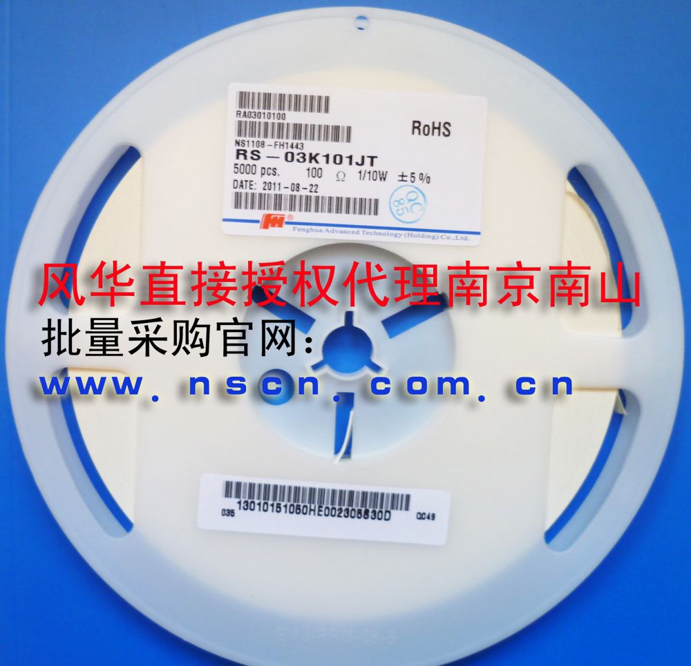 風(fēng)華高科(FH)代理商南京南山半導(dǎo)體有限公司代理供應(yīng)風(fēng)華高科(FH)常規(guī)貼片電阻全系列產(chǎn)品。風(fēng)華貼片電阻規(guī)格型號RS-03K101JT是阻值RS-03K101JTR0603封裝J(5%)精度的常規(guī)型號。南京南山半導(dǎo)體在南京總部和深圳備有大量現(xiàn)貨庫存,歡迎撥打風(fēng)華代理南京南山全國咨詢服務(wù)電話或咨詢在線客服。