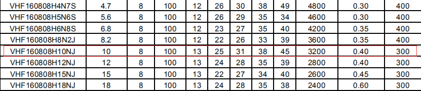 VHF160808H10NJT規(guī)格具體參數(shù)如下: