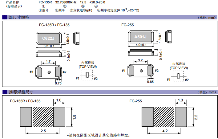 今天給大家來說說愛普生32.768khz貼片晶振中的一款老型號:FC-255。FC-255晶振應(yīng)用范圍很廣闊,比如多種電子消費類,手機應(yīng)用,藍(lán)牙多功能播放器,無線通訊產(chǎn)品,平板電腦等多個領(lǐng)域,FC-255因32.768KHZ晶體本身外觀款式多元化,所以適合多個產(chǎn)品應(yīng)用.并且滿足歐盟ROHS環(huán)保要求,晶體本身有重量輕,體積小,超薄型等多種優(yōu)勢,得到市場認(rèn)可。FC-255頻率范圍32kHz~100kHz,精度10PPM或20PPM或者指定,常用負(fù)載電容7PF,12.5PF,尺寸:4.9X1.8mm,FC-255可用于時鐘模塊,智能手機,全球定位系統(tǒng),因產(chǎn)品本身體積小,SMD編帶型,FC-255可應(yīng)用于高性能自動貼片焊接,FC-255外觀尺寸具有薄型表面貼片型石英晶體諧振器,特別適用于有小型化要求的市場領(lǐng)域,比如智能手機,無線藍(lán)牙,平板電腦等電子數(shù)碼產(chǎn)品。當(dāng)然FC-255逐漸被尺寸更小的FC-135替代是不爭的事實,下面南山電子就給大家分享下FC-255的規(guī)格書,以供大家選型參考:
