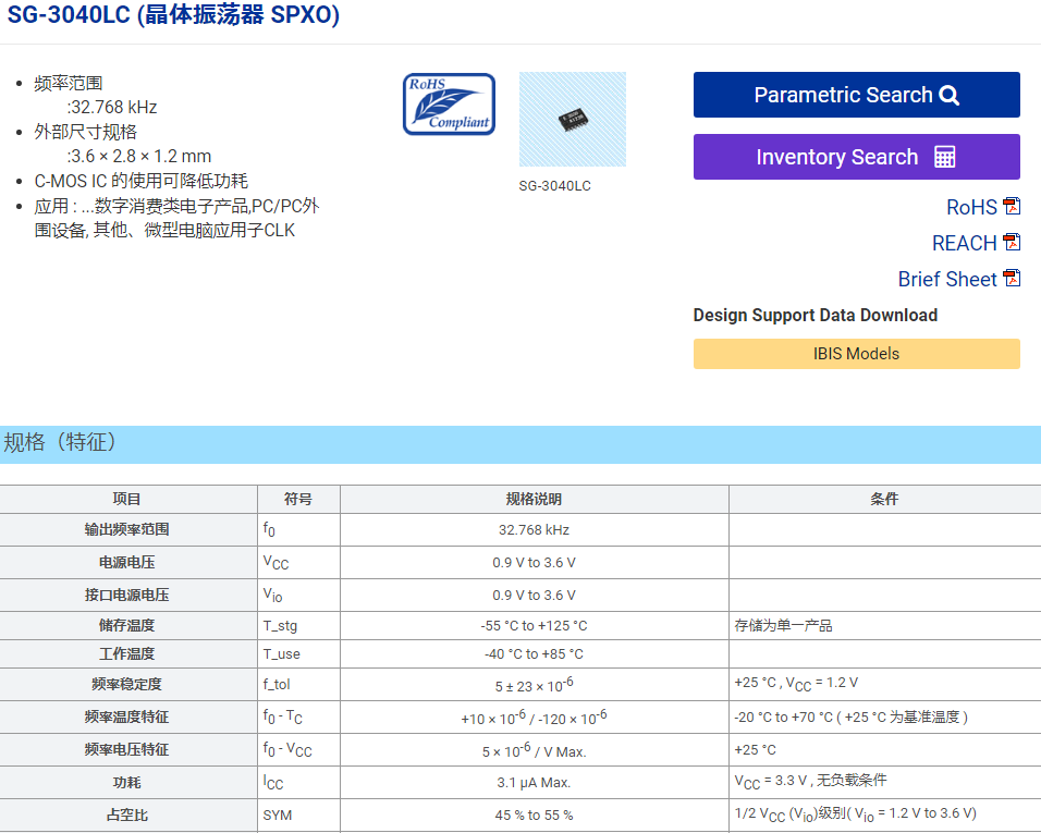 32.768K有源晶振SG-3040LC和SG-3040JC的特征和用途