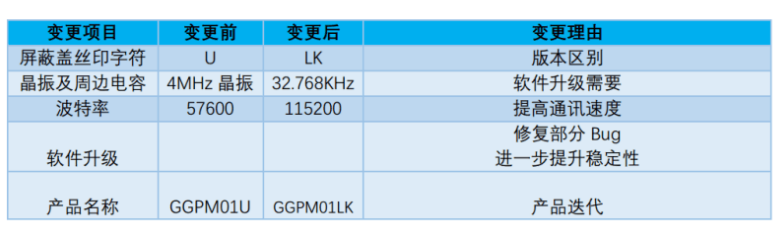 I2C模塊只能用于I2C通訊,不能用于串口通訊;而串口模塊既可以用于I2C通訊,又可以用于串口通訊。只需改變一下管腳1的狀態(tài)即可。GGPM01A 是II2C2模塊,GGPM01U 是串口和II2C2兼容的模塊。而GGPM01LK相比于GGPM01U具有以下優(yōu)勢(shì):
