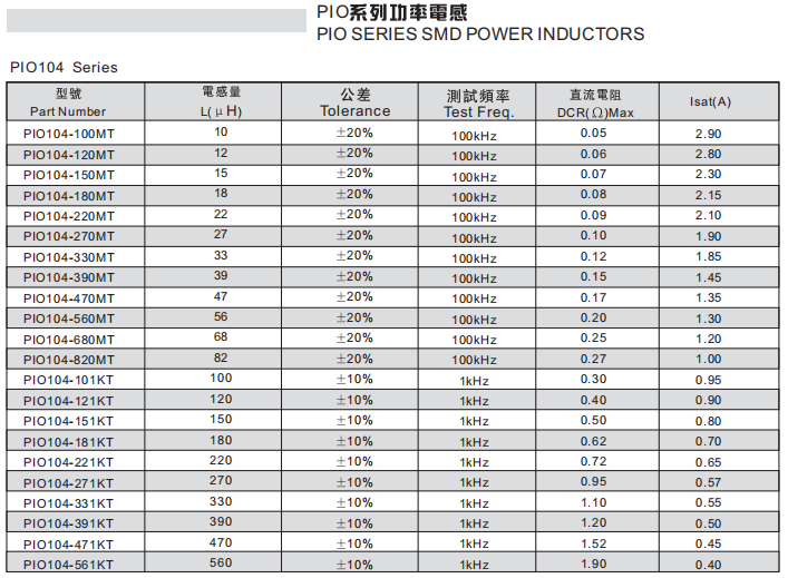 CD104電感,CD104功率電感選型資料指南