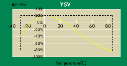 Y5V 的溫度特性如下圖所示: