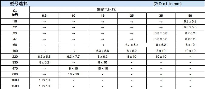 | 一般尺寸型號(φDxL mm) | 6x5.8~12.5x13.5 |
