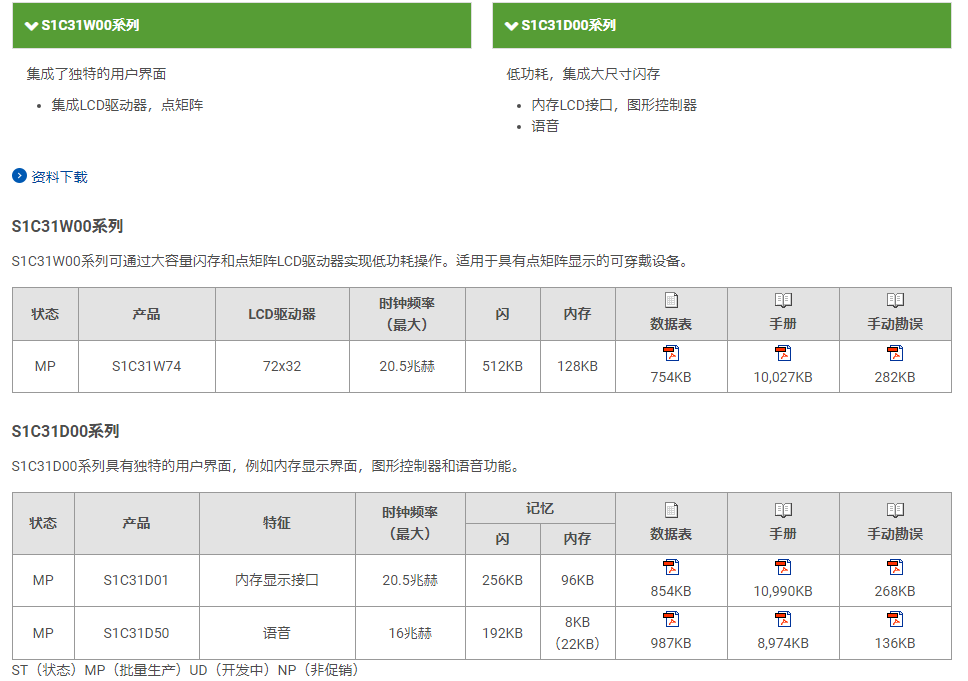 愛普生MCU以外,還提供其他各種型號