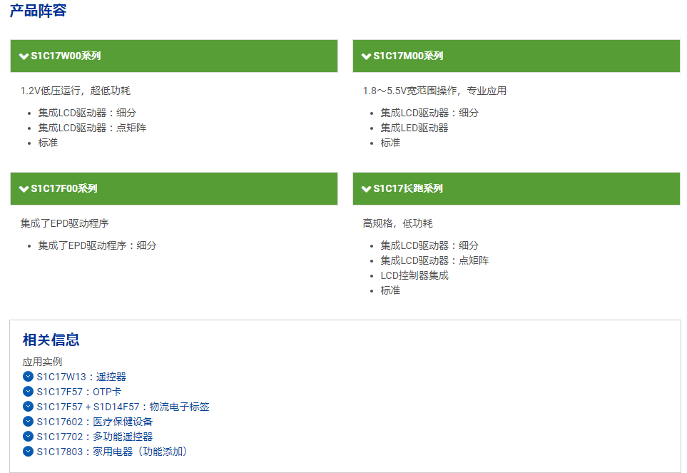 愛普生MCU產(chǎn)品的家族成員,并且?guī)透魑豢蛻舴治鱿聻楹?strong>愛普生MCU芯片的分類規(guī)格和應用案例: