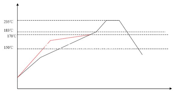 1類曲線:上錫能力強(qiáng),BGA 氣泡較多,墓碑元件多。